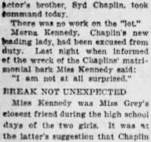 wreck of the Chaplins‘ matrimonial bark Miss Kennedy said: