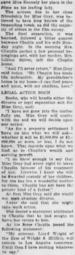 ,And I‘ll never return,‘ Miss Grey said today. ,Mr. Chaplin
