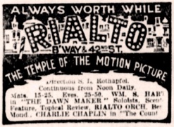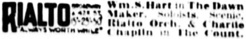 & RIALTO (...) Wm. S. Hart in The Dawn Maker. Soloists,