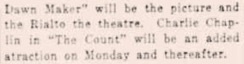 Scenic, Rialto Orch. Charlie Chaplin in The Count.