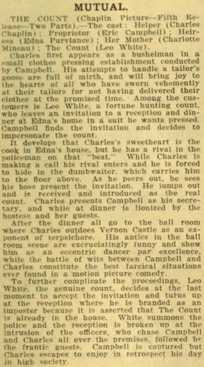 THE COUNT (Chaplin Picture – Fifth Release – Two Parts).