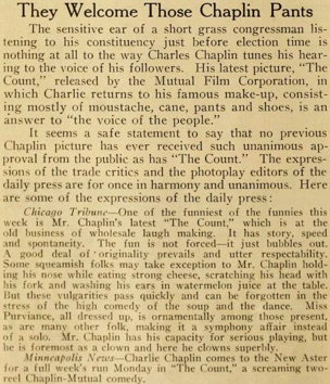 Chicago Tribune (...) Mr. Chaplin has his capacity