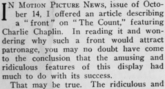 Charlie Chaplin. In reading it and wondering why such a front