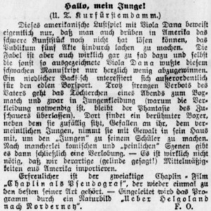 „Erfreulicher ist der zweiaktige Chaplin-Film Chaplin als Pseudograf, der wieder einmal zu den besten seiner