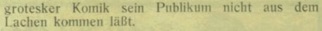grotesker Komik sein Publikum nicht aus dem Lachen kommen läßt.