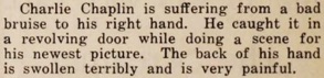 & Charlie Chaplin is suffering from a bad bruise to his right