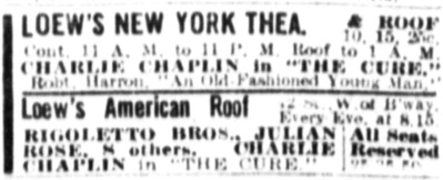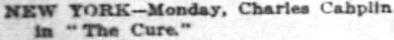 „NEW YORK – Monday, Charles Chaplin in The Cure.“