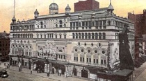& New York Theatre, exterior by night,
