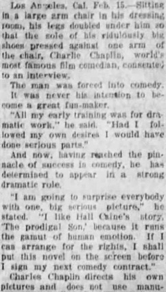 Editorial content. „CHARLIE CHAPLIN TELLS