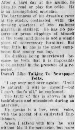 Editorial content. „CHARLIE CHAPLIN TELLS