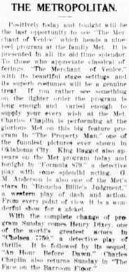 shown in Oklahoma City.“ (...) „Charles Chaplin also returns