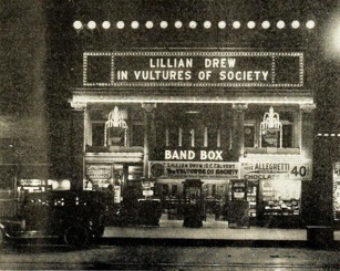 Band Box Theatre, exterior by night, electric