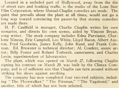 Star Film Corporation, where Mutual-Chaplin comedies are made.
