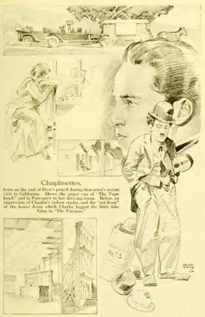 and la Purviance in her dressing room. Below, an impression