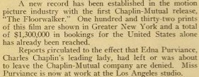 Reports circulated to the effect that Edna Purviance, Charles Chaplin‘s leading lady, had left or was about to leave