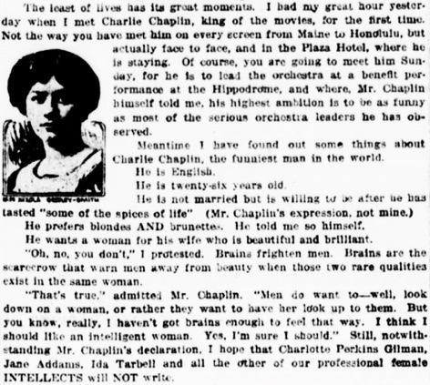 Editorial content. „Charlie Chaplin Would Be a Screen Hamlet;