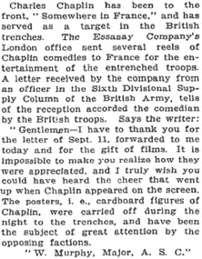& Charles Chaplin has been to the front, „Somewhere in France,“