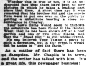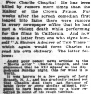 „Poor Charlie Chaplin! He has been killed by rumors more