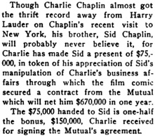 Chaplin‘s $670,000 contract with the Mutual. Some of the papers attributed it to ,press work‘ and others were inclined