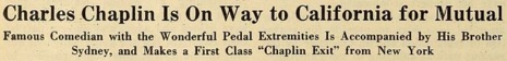 Editorial content. „Charles Chaplin Is On Way