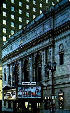 & American Theatre, exterior by night, marquee „Carnival“