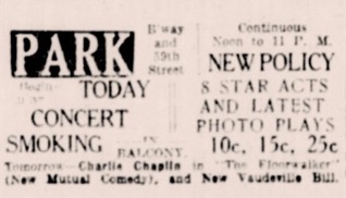 Advertisement. „Park. Tomorrow Charlie Chaplin