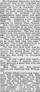 She has been out with Mr. Chaplin a lot.‘“ (...)