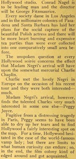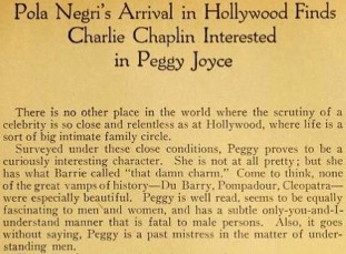 Finds Charlie Chaplin Interested in Peggy Joyce