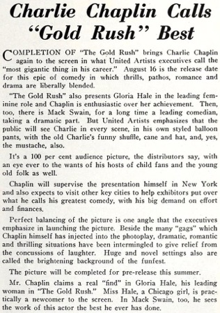 COMPLETIOn OF The Gold Rush brings Charlie Chaplin