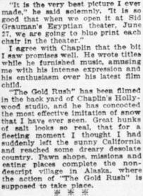 The Gold Rush opens June 26, 1925