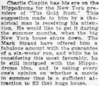 „Charlie Chaplin has his eye on the Hippodrome for the