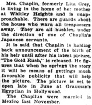 Mrs. Chaplin, formerly Lita Grey, is living in the home