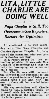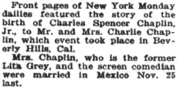 featured the story of the birth of Charles Spencer Chaplin, Jr.,
