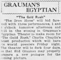 Grauman‘s Egyptian theatre, showing „The Iron Horse,“ for