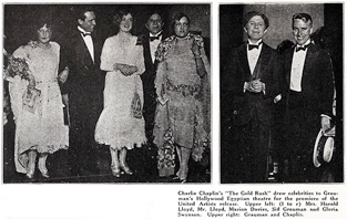 Harold Lloyd, Mr. Lloyd, Marion Davies, Sid Grauman and Gloria Swanson. Upper right: Grauman and Chaplin.