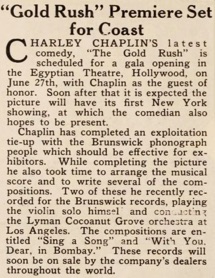 The Gold Rush opens June 26, 1925