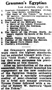 The Gold Rush Program, Egyptian Theatre, Los Angeles,