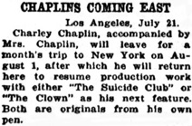 Charley Chaplin, accompanied by Mrs. Chaplin, will