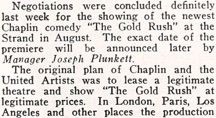 Turnout (...) Chaplin Film to Play Strand By JOHN S. SPARGO, Exhibitors Herald, July 11, 1925