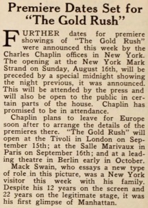 in Chaplin‘s The Gold Rush (United Artists). Swain is now in New York