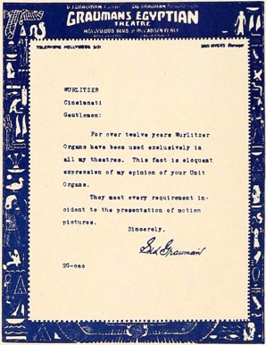 Letter. GRAUMAN‘S EGYPTIAN Theatre