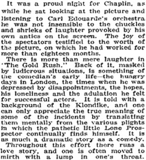 vociferously for a speech from the author-actor, and Mr. Chaplin,
