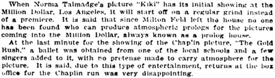 & When Norma Talmadge‘s picture „Kiki“ has its initial