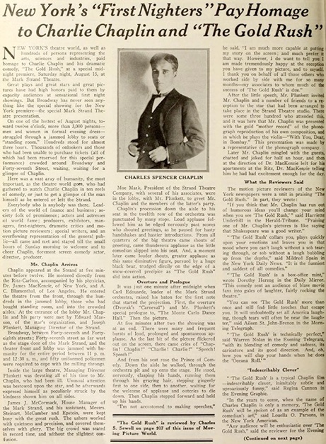 comedy, The Gold Rush, which had its New York premiere