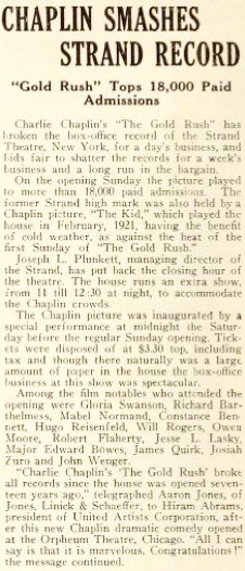 the box-office record of the Strand Theatre, New York, for a day‘s business, and bids fair to shatter the records