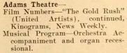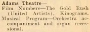 & Adams Theatre – Film Numbers – „The Gold Rush“ (United