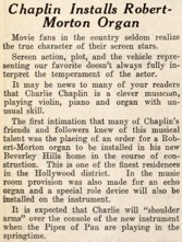 & Chaplin Installs Robert-Morton Organ (...)