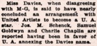 & Miss Davies, when disagreeing with M-G, is said to have nearly concluded an arrangement with United Artists.