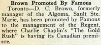 Toronto. – D. C. Brown, formerly manager of the Algoma,