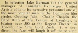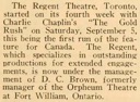 (...) Regent Theatre Toronto Newspaper Ad, 1925